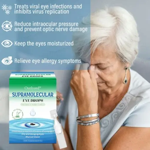 Dry Eye Syndrome is an eye condition caused by insufficient tear production or an unstable tear film, commonly presenting as dry eyes, foreign body sensation, stinging, and sensitivity to wind. As we age, the function of the tear glands gradually weakens. If left untreated, the symptoms of dry eye syndrome may lead to corneal damage and affect vision. Our eye drops not only provide immediate relief from dry eye symptoms but also maintain long-lasting lubrication, help stabilize the tear film, and alleviate discomfort, leaving your eyes feeling more comfortable.
