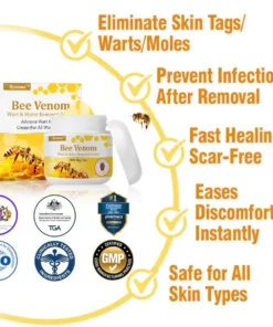 Dr. Hannah Miller’s study under the National Library of Medicine explores the benefits of bee venom for treating skin tags and warts. Her research reveals that bee venom, rich in bioactive compounds, effectively combats bacteria, fungi, and viruses responsible for skin conditions. The enzyme phospholipase A2 in bee venom plays a crucial role in breaking down abnormal tissue, which helps in removing skin tags and warts. Additionally, the study highlights bee venom’s antiviral properties, which may prevent skin infections and promote the death of abnormal skin cells during treatment. While the results are promising, Dr. Miller emphasizes the need for further clinical trials and in vivo studies to confirm the safety and effectiveness of bee venom as a treatment option. This research opens up new possibilities for bee venom as an alternative remedy for managing skin tags and warts, offering hope for those seeking new solutions for these common dermatological issues.