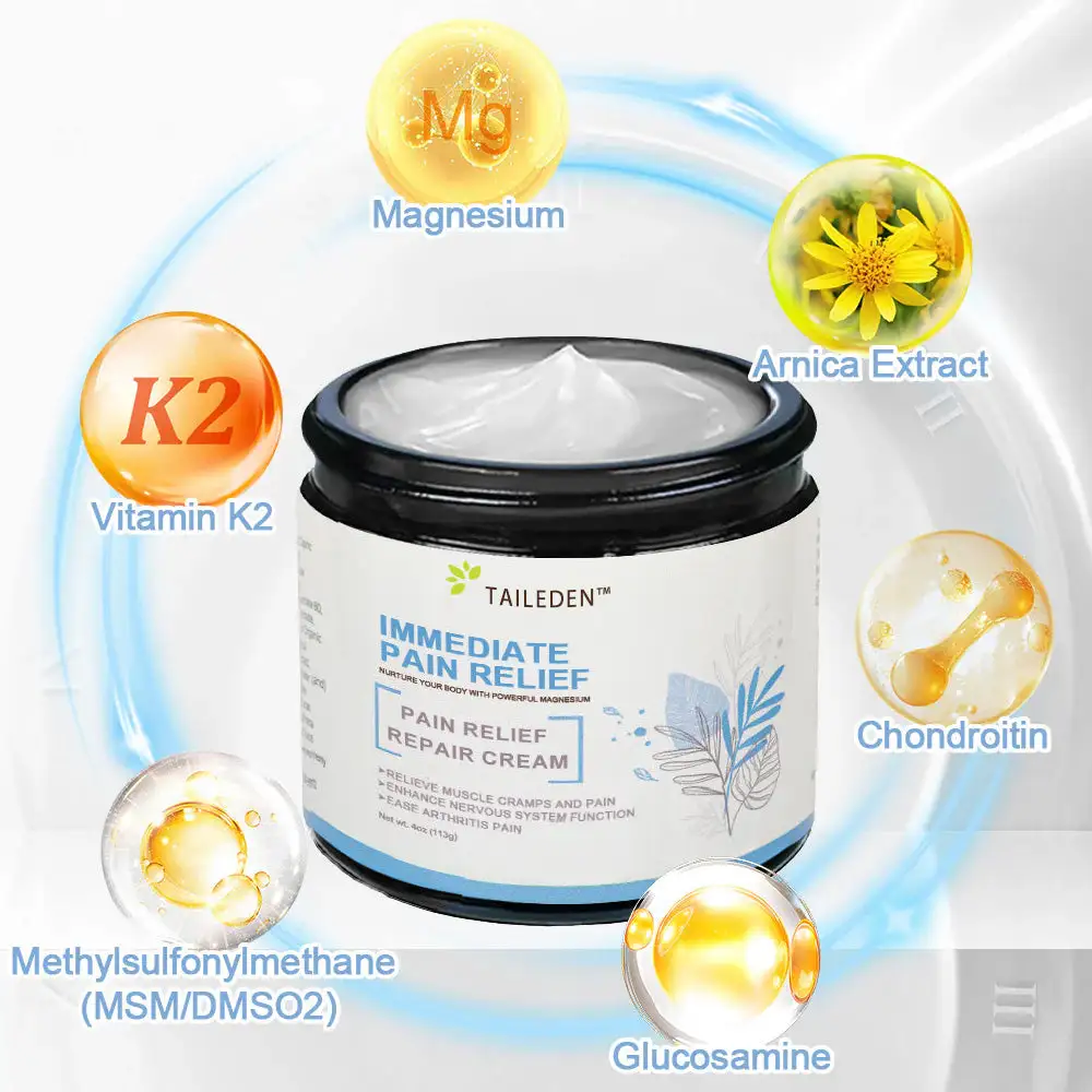 “As an orthopedic surgeon, I endorse TAILEDEN™ Magnesium pain relief healing cream for individuals suffering from joint and bone conditions such as osteoarthritis, rheumatoid arthritis, and other inflammatory disorders. This cream contains active ingredients like magnesium, glucosamine, and chondroitin, which work to alleviate inflammation, nourish joints, and enhance mobility. It also aids in rebuilding and restoring cartilage and bone tissue, alleviating pain and stiffness while eliminating harmful crystals that can accumulate in joints, thereby improving overall joint function.”