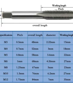 Set includes: 1pc tap wrench+5pc hand tap M3-M8