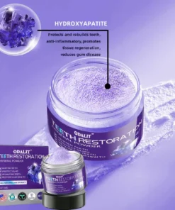 Experience noticeable whitening results in just one week with ODALIT™ Teeth Restoration Mineral Powder. Purple is the opposite and complementary color of yellow on the color wheel, so applying water-soluble purple dye to your teeth will counteract any yellow undertones. Plus, its vitamin C-rich formula removes plaque, tartar, and discoloration, restoring teeth to their natural whiteness.