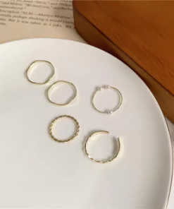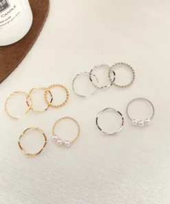 5pcs/set Ring Female Japanese Korean Style Simple Three Pearl Ring Personality Ring Net Red Tail Ring Jewelry