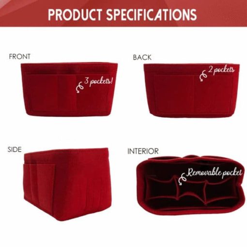 The bag organizer Made of high quality felt fabric with elegant design. bag organizer It will help you to organize your bag neatly and not lose your personal belongings in your bag.