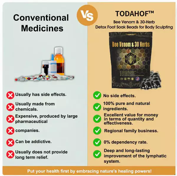- 100% natural ingredients (Bee Venom, Royal Jelly, and 30 herbs) promote natural detoxification, weight loss, and lymphatic health.
