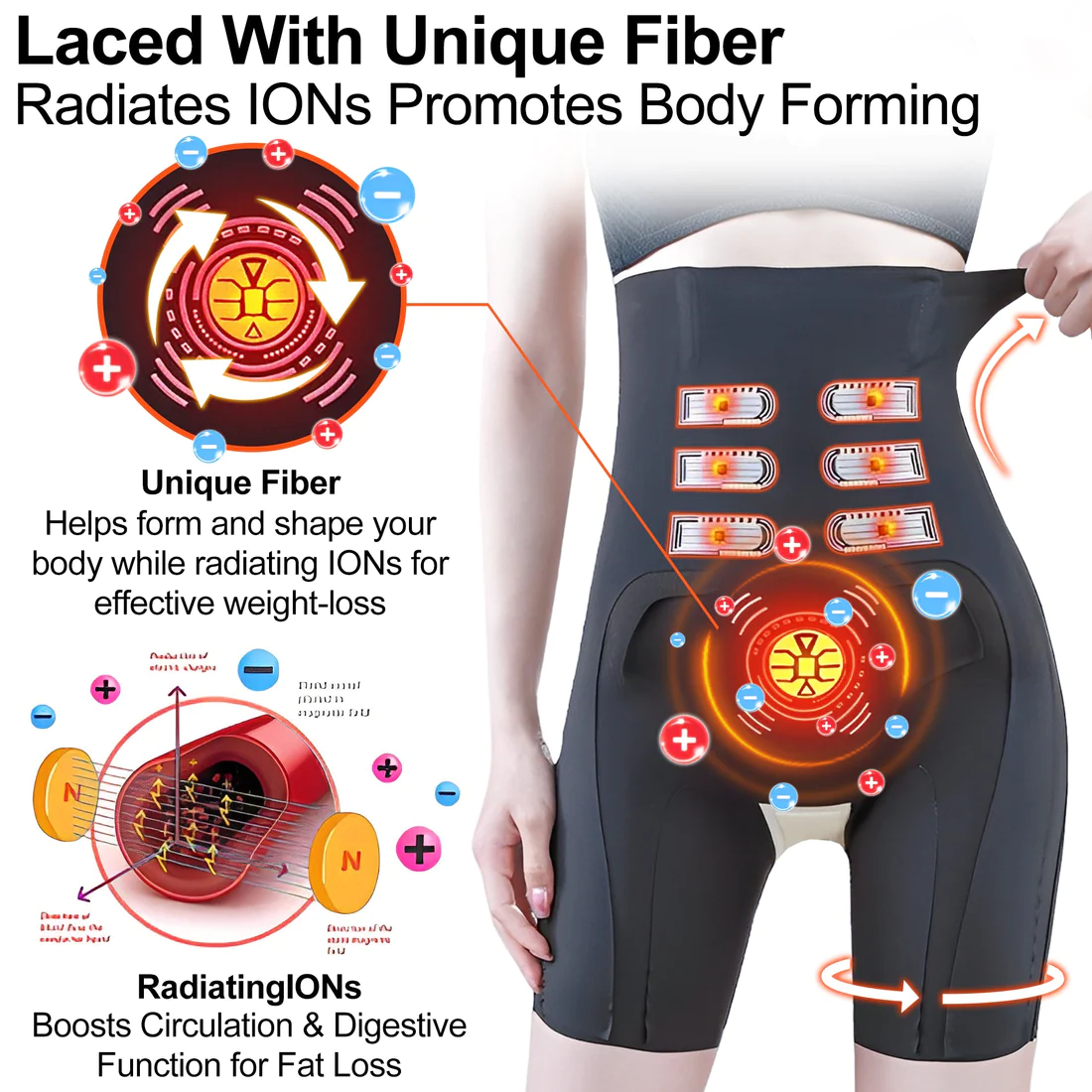 - 1x TRFIC™ Tomaline Self-Heating Ionic Fiber Shaping Shorts (Black/Beige/White)