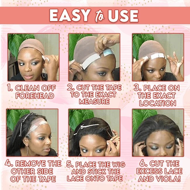 ✔ Easy to Use: Much more reliable and mess-free than using wig glue. Simply put the tape on the hairline and stick the lace base firmly.