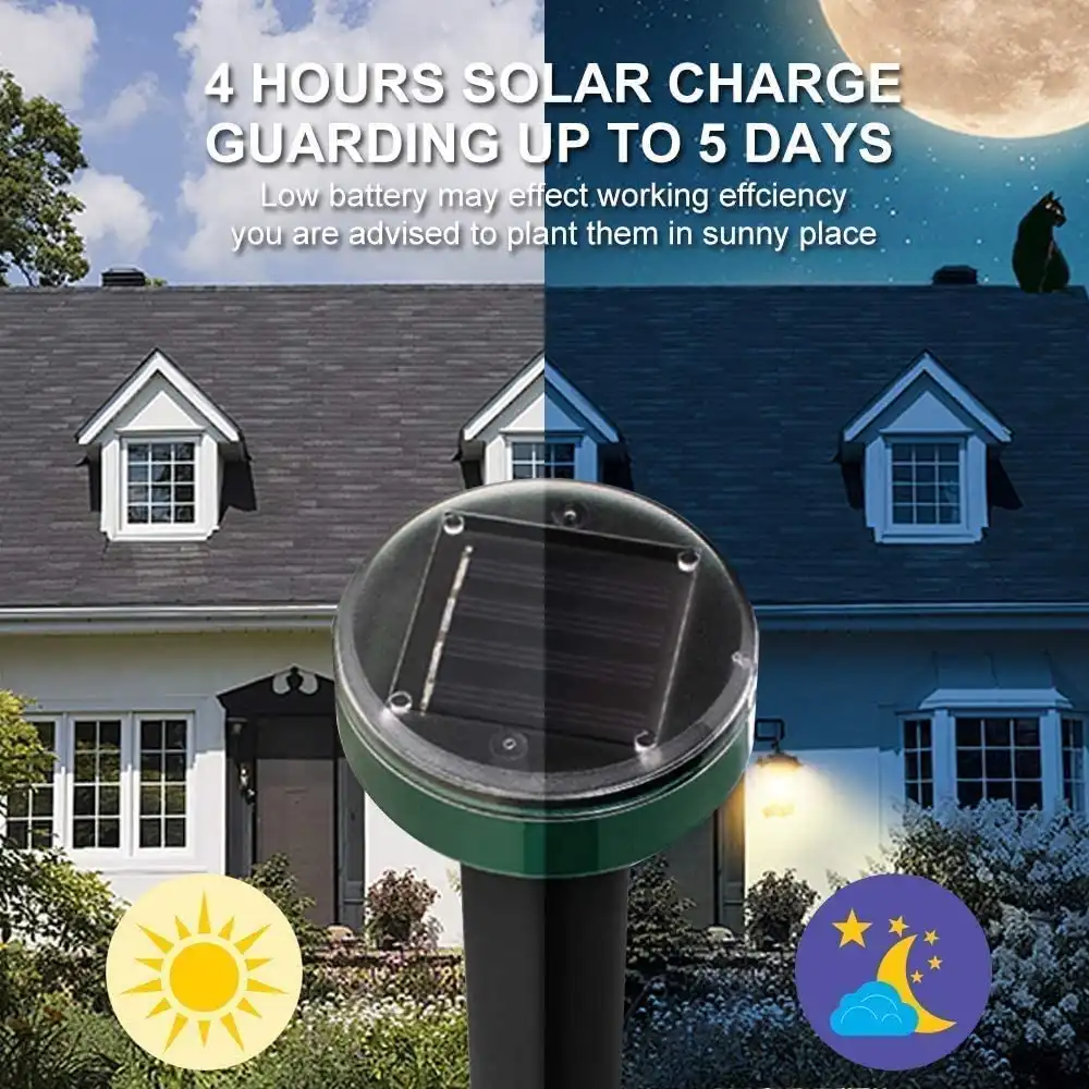Frozen, watered down or puddled soil will cause this device to work poorly. It is solar powered and is impenetrable for all unwanted visitors 24/7. Sound waves attack the mouse’s auditory system and nervous system and stimulate its brain.