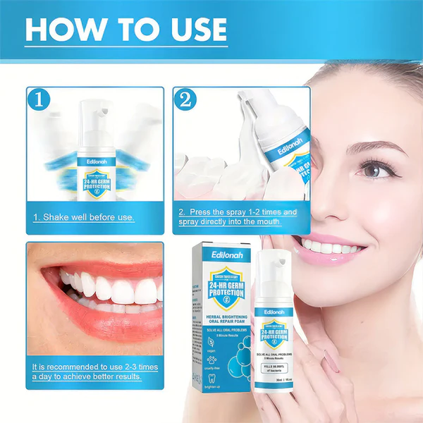 EdiJonah® Herbal Brightening Oral Repair Foam can help you kill bacteria that penetrate deep into the alveolar and root canal, stimulate the restorative formation of dentin, and help repair tooth decay. For severely necrotic cavities, it can stimulate the gums to produce new tooth germs and promote the growth of new teeth. Calculus is calcified dental plaque that inflames the gums, which can lead to bone loss, loose teeth, tooth sensitivity, etc. EdiJonah® Herbal Brightening Oral Repair Foam can help eliminate dental plaque and remove stubborn calculus attached to teeth, making your teeth white and healthy again.