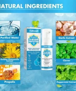 Unpree™ Herbal Brightening Oral Repair Foam can help you remove the germs that cause bad breath, dental calculus, tonsil stones, tooth decay, etc., completely help you eradicate bad breath, and the added menthol can make your breath fresh. Mouth ulcers are usually caused by bacterial erosion, which makes us suffer from pain and prevents us from eating normally. EdiJonah® Herbal Brightening Oral Repair Foam can help you kill the bacteria in your mouth and heal mouth ulcers.