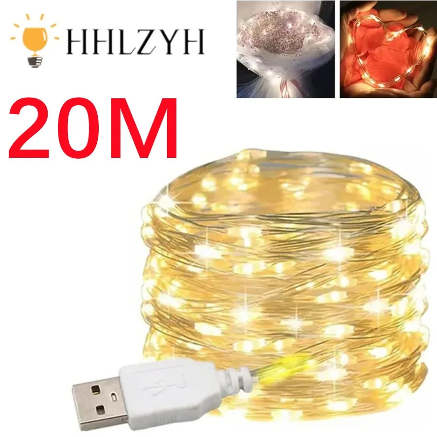 20M 10M Waterproof USB LED Lights String Copper Wire Fairy Garland Light Lamp Christmas Wedding Party Holiday Lighting wreath