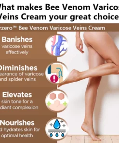 Furzero™ Bee Venom Varicose Vein Cream combines effective natural ingredients with a comprehensive strategy to target varicose veins and nourish the skin. The cream’s venotonic components strengthen the vein walls, promote circulation, and reduce blood pooling, which leads to varicose veins. Additionally, skin-rejuvenating elements improve skin tone and moisture, resulting in a healthier and more even skin texture and color in the affected area. The cream also contains natural anti-inflammatory agents to alleviate discomfort and swelling associated with varicose veins. With regular use, as recommended, both varicose veins and the overall appearance of your skin can be visibly improved.