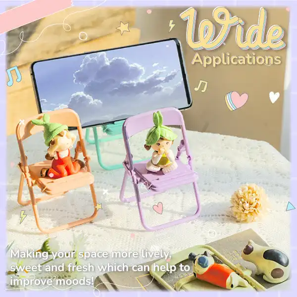 The phone holder is lightweight and foldable so you can easily store it in your pockets, purse or bags anytime, anywhere. Great for home, office, travels, business trips, hotels and so on. This cute Versatile Mini Folding Chair Phone Stand can support multiple mobile models of both Iphones and androids. What else? It can also be used as an impressive decorative display, dollhouse add-on, baby seat or a cute holder for glasses, pens, mini figurines and many more possibilities. Experience comfortable hands-free viewing with this versatile mini folding chair phone stand!