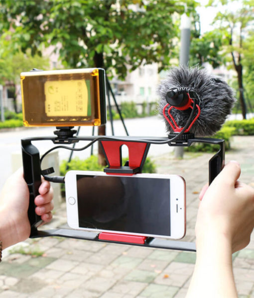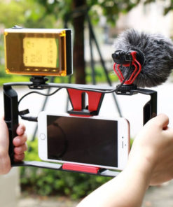 Vlogger Box is a must-have accessory for anyone who wants to improve their filmmaking skills with a cell phone camera. Moreover, you can mount the device on any tripod in order to fix the camera in a stable position. But if you go handheld, it allows you to capture relatively smooth shots.