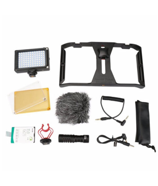 Package included: 1 x Video Rig, 1 x Microphone, 1 x LED Video Light, (Battery not included)