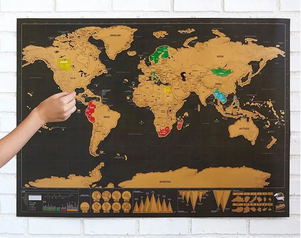 My husband recently returned home from business travel. He was excited to scratch off the places he’s been for business and pleasure. He has decided to view the rest of the map as a challenge. He’s already planning which places he wants to scratch off next. One aspect of the map that we really enjoyed was the individual states in the United States. Great map and an awesome gift!