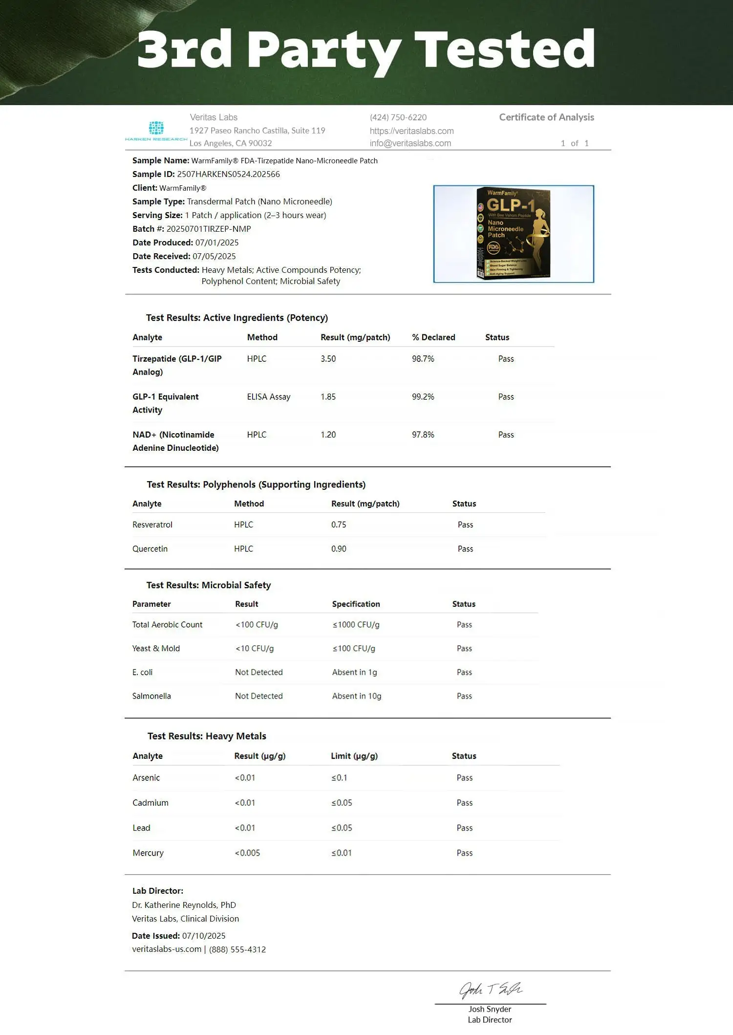 The FDA certification gives you peace of mind, knowing that this advanced patch meets the highest U.S. standards for safety, reliability, and performance. We’re honored to provide a clinically-backed innovation that helps people achieve their health goals—without pills, injections, or harsh side effects.