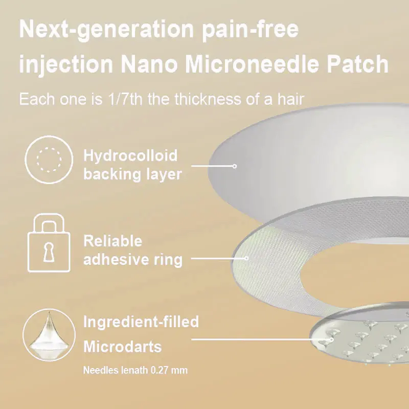 The Nano Microneedle Patch contains FDA-Tirzepatide in each patch. It works by mimicking the action of Glucagon-like Peptide-1 (Tirzepatide). promoting insulin secretion. inhibiting glucagon secretion. and delaying gastric emptying. which helps control blood sugar levels and aids in weight loss.