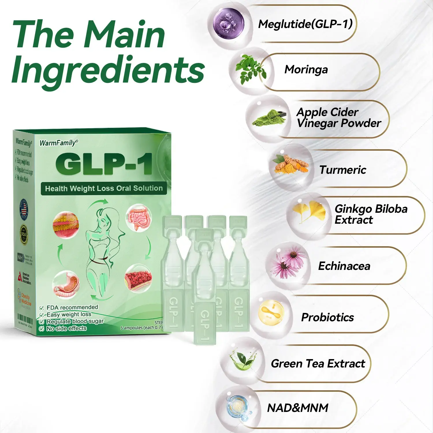 WarmFamilyยฎ ๐๐๐-๐ย Healthย ๐๐๐ข๐ ๐ก๐ญ ๐๐จ๐ฌ๐ฌ ๐๐ซ๐๐ฅ ๐๐จ๐ฅ๐ฎ๐ญ๐ข๐จ๐ง, developed by a team of over 30 experts at the Mayo Clinicโs Department of Metabolic Medicine over 20 years of research, combines Meglutideย with potent herbal ingredients to boost metabolism, accelerate fat burning, and support digestive and lymphatic health. FDA-approved for safety and efficacy, this Oral Liquid offers a science-backed solution for weight loss and overall well-being.