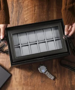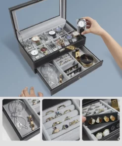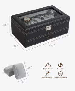 【Real Glass Top】Real glass lid keeps your watches from dust, and easy for you to see all the watches in the box, and helps you decide quickly which watch to wear. It will display all your watches in a convenient, fashionable, and clear way.