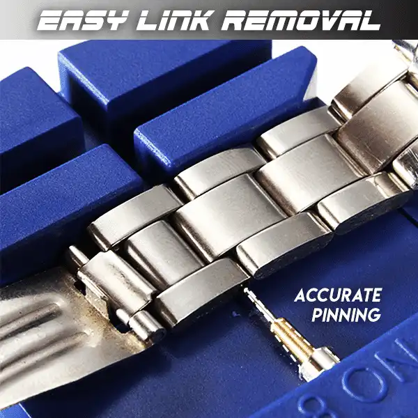 Simply place watch band flat on the platform, line up with the pin head and connect to the band for easy link removal.