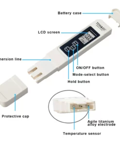 Measurement Range: 0-9990ppm, 0-9990µs/cm; Accuracy: ± 2%, 0.1- 80.0°C, 32.0-176.0°F.; Factory calibrated; Automatic temperature compensation.