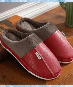 - Comfy & waterproof. Designed with the modern aesthetic, the sole and vamp are sewed up by side-seam technic which makes sure these Waterproof PU Warm Slippers, comfortable, and durable.