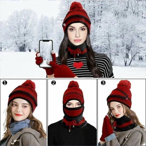 It is extremely thick and warm. It is also ultra flexible and suitable for all sizes. Perfect for the winter season. Keeps the cold away on cold days. Enjoy the warm winter! Hat scarf mask, warm three-piece. Keep your head, ears, face and neck warm.