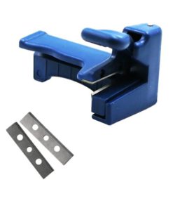 Once you get the hang of this tool it works well to give you square edge for edge-banding. We even made it work for laminate strips on top of backsplashes. It cuts more than 1″ wide, but, not much more than that
